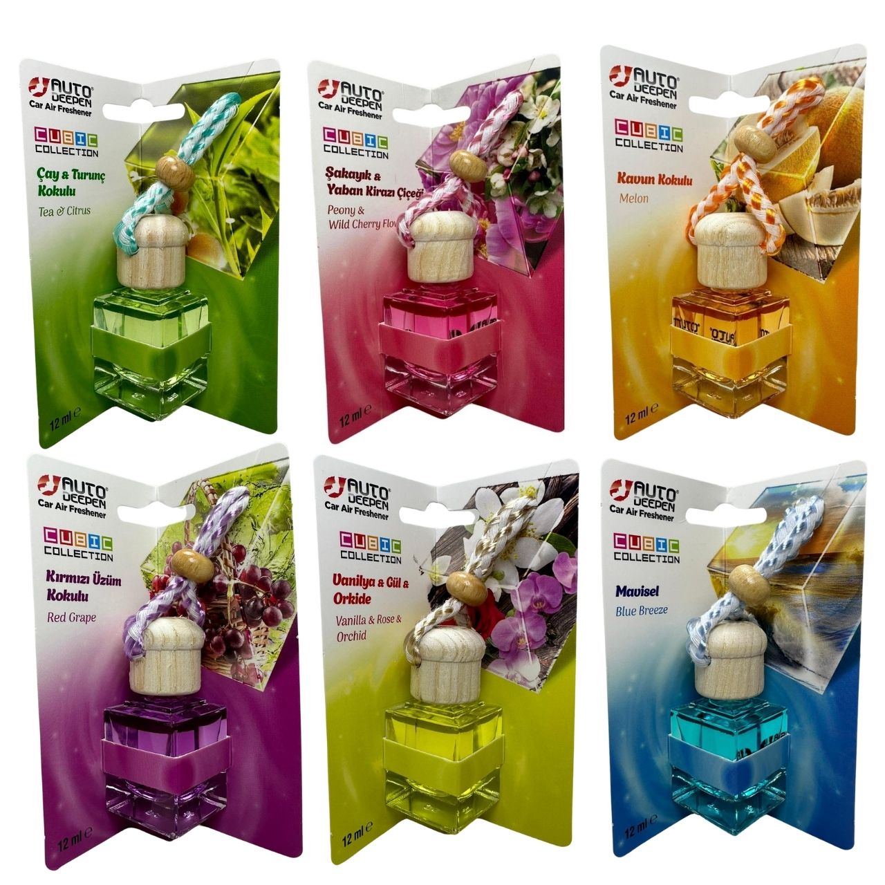 AutoDeepen KÜBİK KOLEKSİYON Ahşap Kapaklı Asma Koku; sizin için özenle seçilmiş kaliteli uçan yağlardan özel formüllerle üretilmiş, kötü kokuların etkisini yok eden ve bulunduğu ortama güzel koku veren sıvı bir oto kokusudur.
